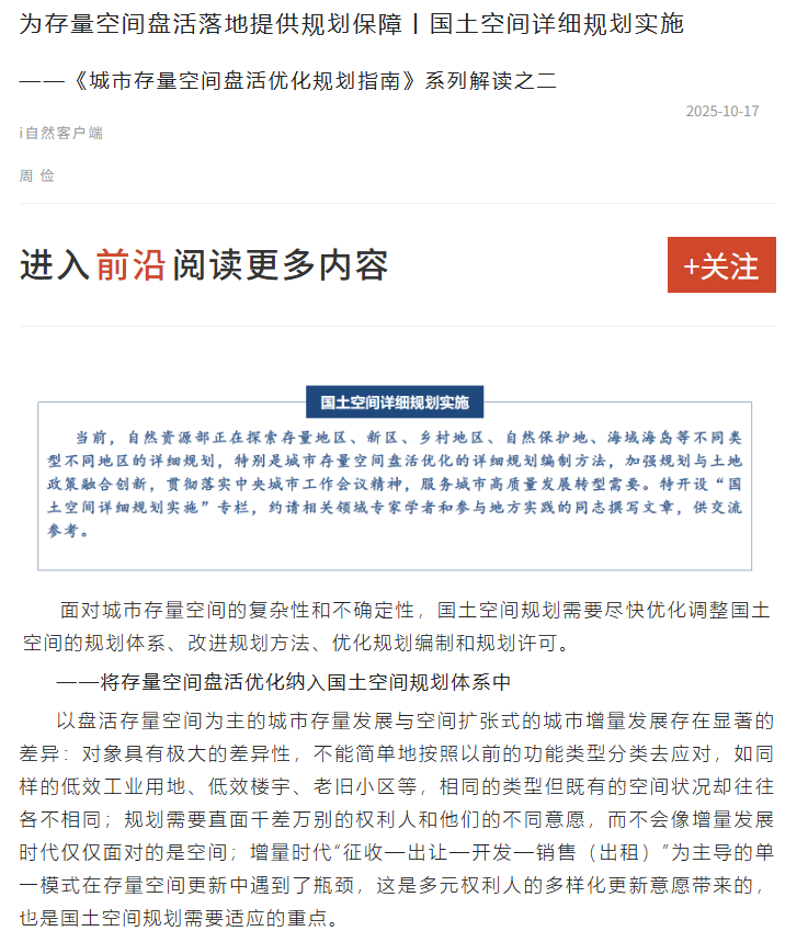 为存量空间盘活落地提供规划保障丨国土空间详细规划实施