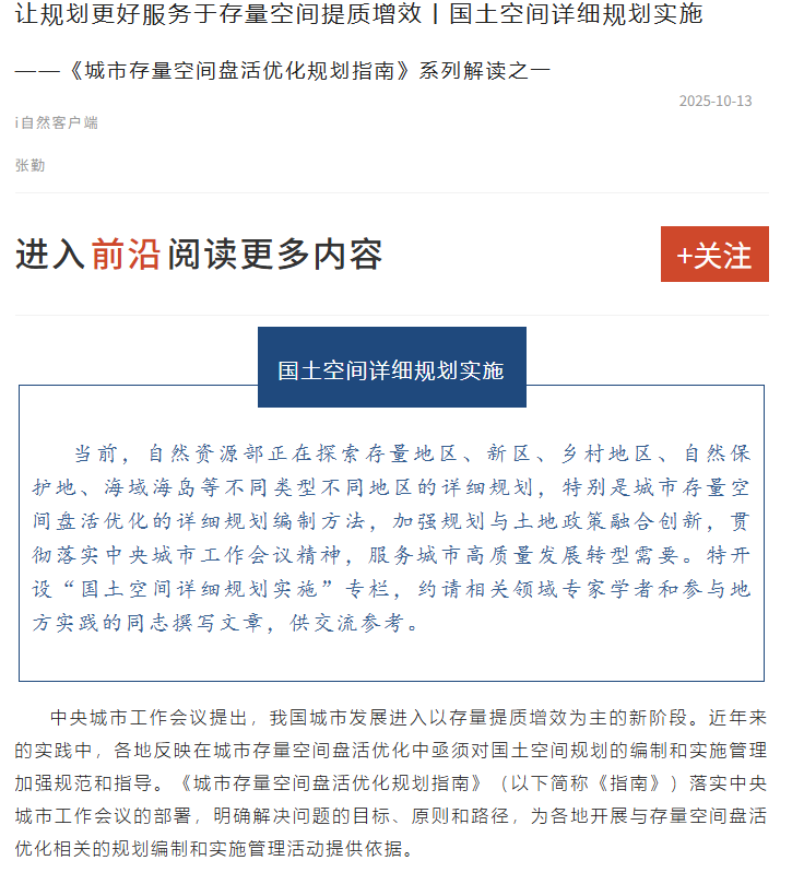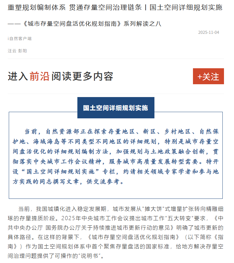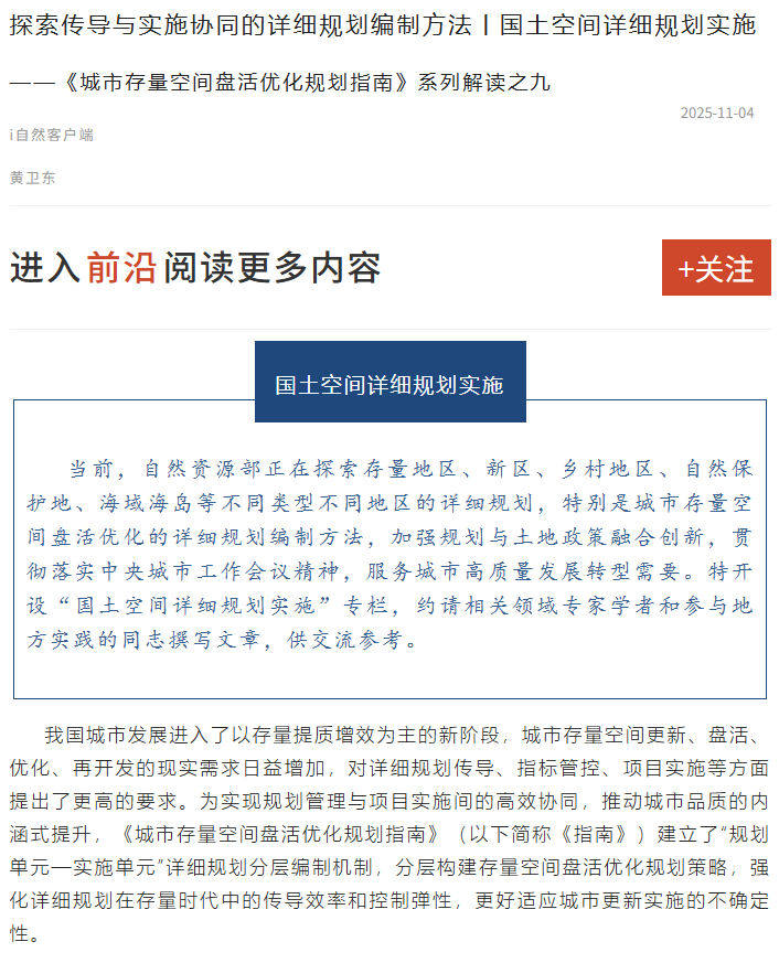 重塑规划编制体系 贯通存量空间治理链条丨国土空间详细规划实施