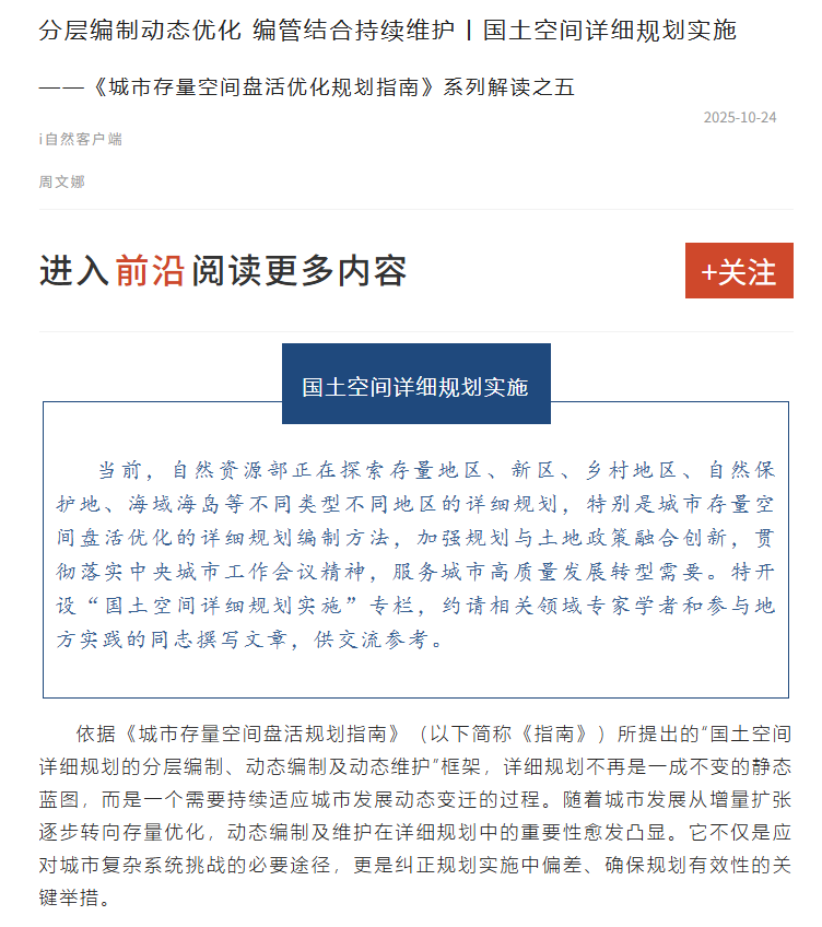 分层编制动态优化 编管结合持续维护丨国土空间详细规划实施