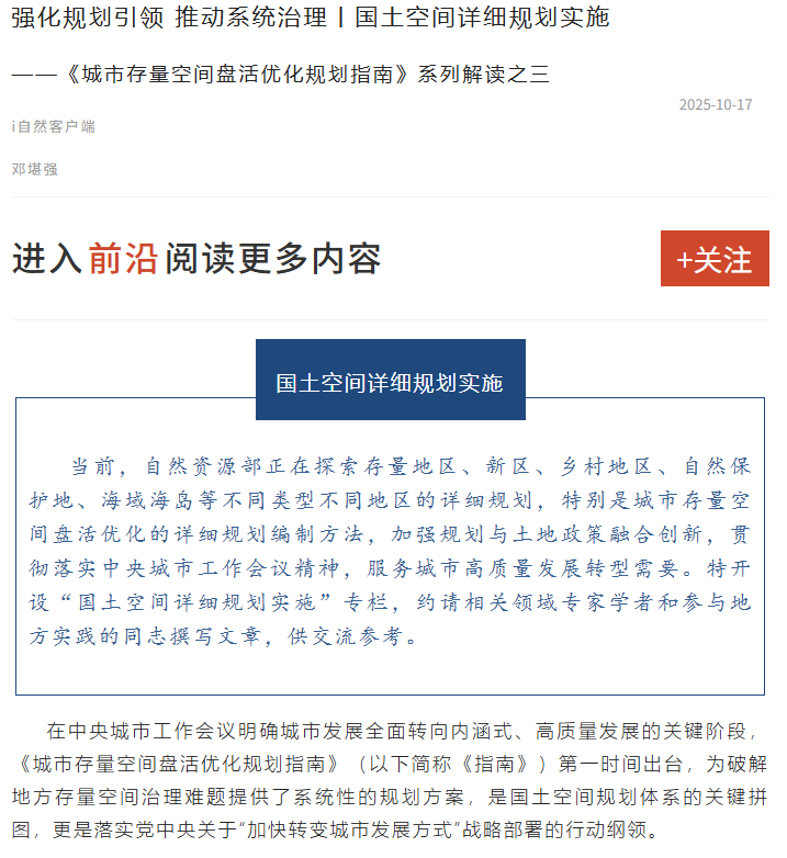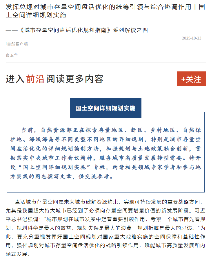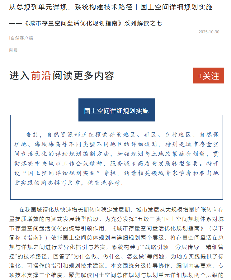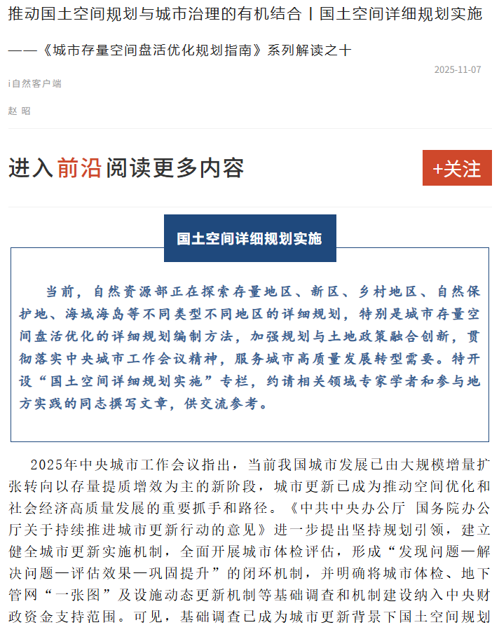推动国土空间规划与城市治理的有机结合丨国土空间详细规划实施