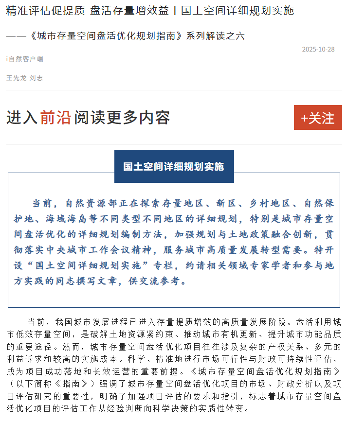 精准评估促提质 盘活存量增效益丨国土空间详细规划实施